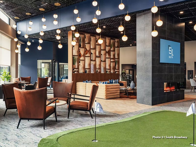 Located at 51 S Broadway in the vibrant heart of White Plains, 51 South is an all-new eight-story luxury rental building offering studio to two-bedroom homes with upscale finishes like in-unit laundry, quartz countertops, GE appliances, and spa-style bathrooms. Residents enjoy elevated amenities — a rooftop green, pool deck with cabanas, coworking lounge, game room, and pet-friendly perks like a dog spa, plus conveniences like a bike room. With a walk score of 96 and easy Metro-North access, it’s urban convenience meets modern comfort.